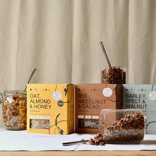 nibs etc. is a UK startup dedicated to transforming cocoa fruit pulp from chocolate production and apple pulp from juice manufacturing into award-winning granola, granola bars, and savory crackers. Their products — high in fiber and nutrients — are available in major retailers including Waitrose, Whole Foods, and Selfridges, proving that food industry by-products can become premium snack foods that consumers love.